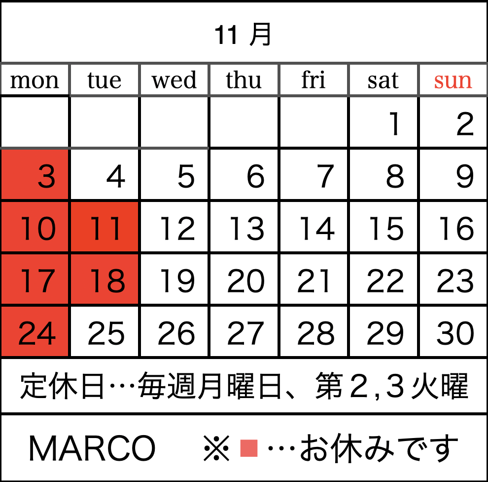11月の営業日のお知らせです。